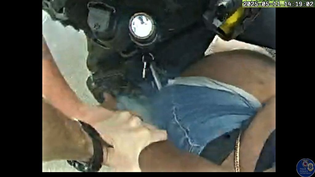 TYLER, TX- (City of Tyler Police Dept) On Sunday, May 11, at around 2:09 p.m., Tyler Police responded to a theft at Dollar General on Gentry Parkway. Although the investigation into this incident is not complete, the evidence, including the officer’s body camera video, shows an officer located two suspects nearby, and while one complied with detention, the other tried to walk away and resisted when ordered to stop. During the struggle, a backup officer arrived to assist with the arrest. The suspect continued to resist arrest and grabbed an officer’s firearm, discharging the weapon. To prevent further escalation and the use of deadly force, an officer quickly utilized a closed-hand strike. Shortly afterwards, the suspect was taken into custody.