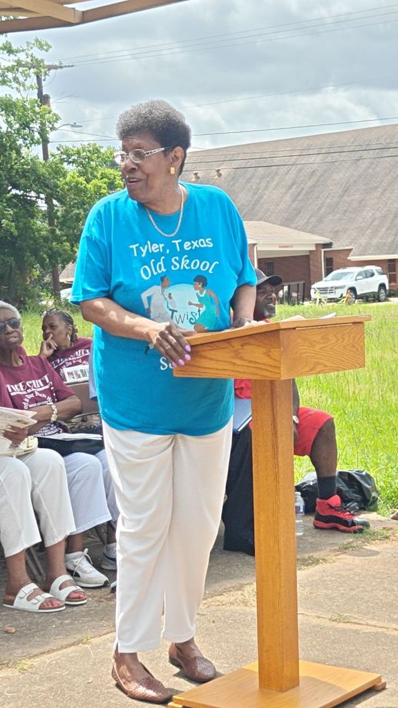 Cynthia Warren Davis gave recognition and history of the churches on the Cutt: Greater St. Mary Baptist Church, Houston Temple COGIC, North Tenneha Church of Christ, and Miles Chapel CME. Rachel Monday and Carolyn Warren then presented rememberances of Tyler Black Schools before integration, and a recognition of local Black educators.